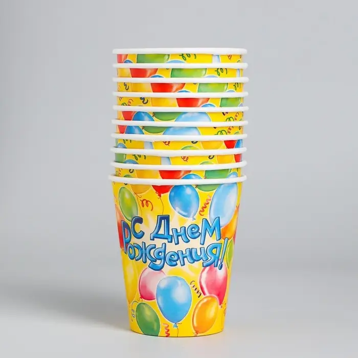 Стакан одноразовый бумажный «С днем рождения», 250 мл