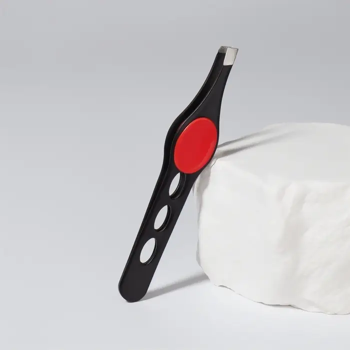 Конструкция со скошенными концами позволит избавиться от «излишков» самостоятельно: нужно всего лишь схватить с помощью пинцета волосок и потянуть его в нужном направлении. А удобный резиновый держатель не даст инструменту выскользнуть из рук.