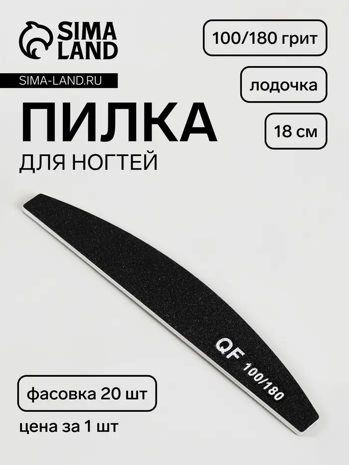 Пилка для ногтей, лодочка, 100/180 грит, 18 см, фасовка 20 шт., чёрная