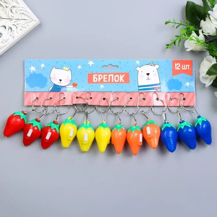Фонарик свет на кольце "Клубничка" светит МИКС 3х5,5х3 см