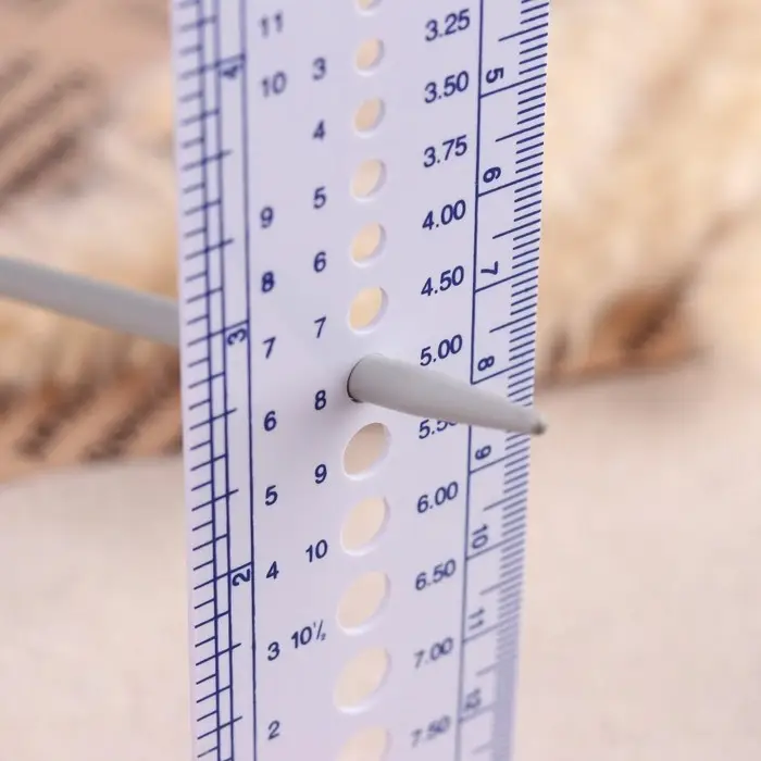 Вы больше не запутаетесь в размерах спиц для вязания: даже если маркировка на инструментах давно стёрлась, узнать их диаметр вам позволит линейка для определения размера спиц.
