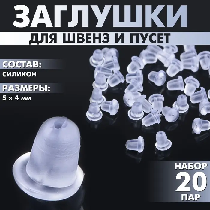 Заглушки для сережек, швенз, пусет силиконовые для швенз и пусет (набор 20 пар), 5×4 мм