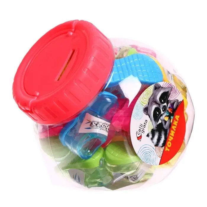 Точилка 1 отверстие с контейнером FunGraphix "Панда", МИКС