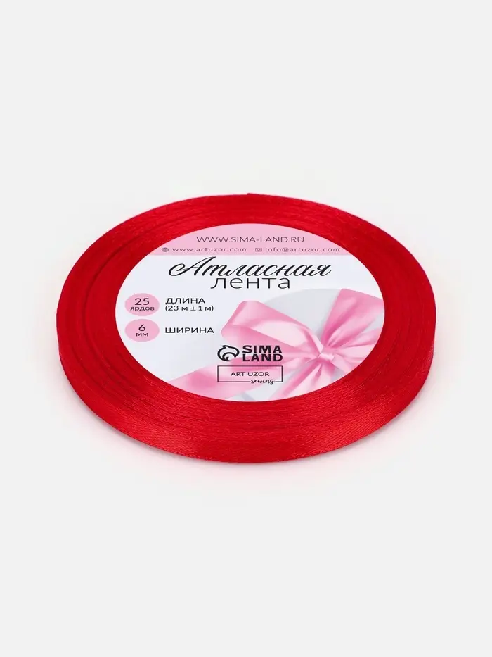 Лента атласная, 6 мм, 23±1 м, красная №26