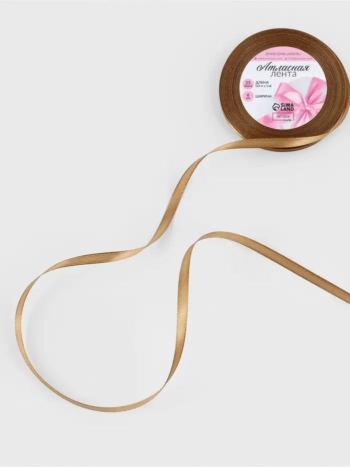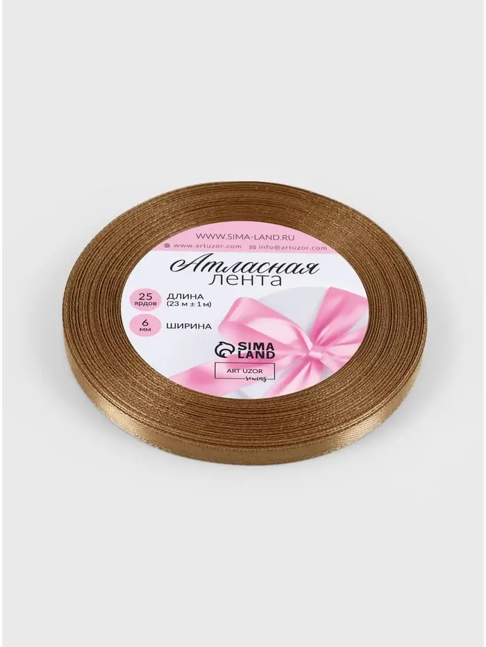 Лента атласная, 6 мм, 23±1 м, тёмно-бежевая №106