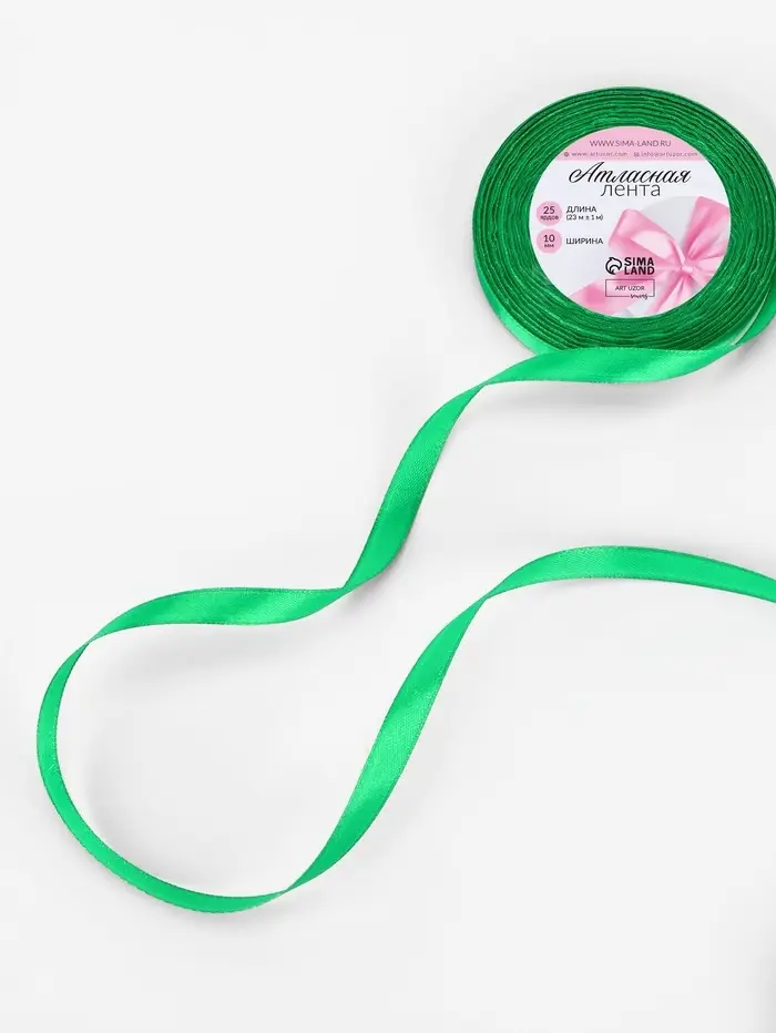 Лента атласная, 10 мм × 23 ± 1 м, цвет зелёный №19