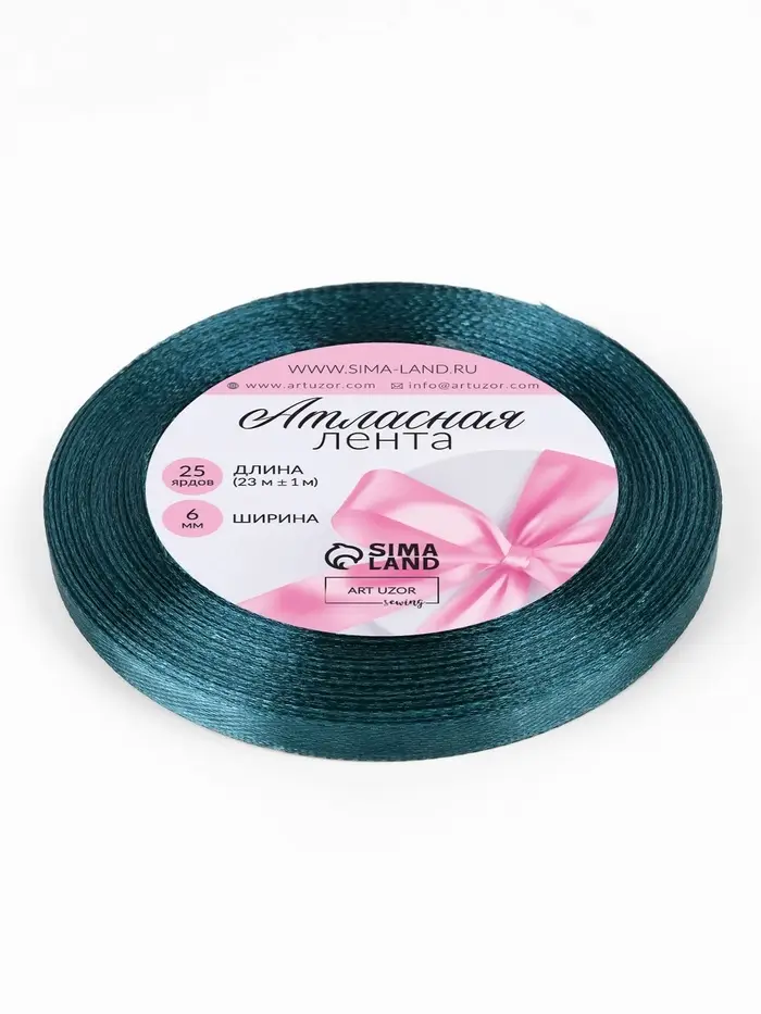 Лента атласная, 6 мм, 23±1 м, тёмно-бирюзовая №62