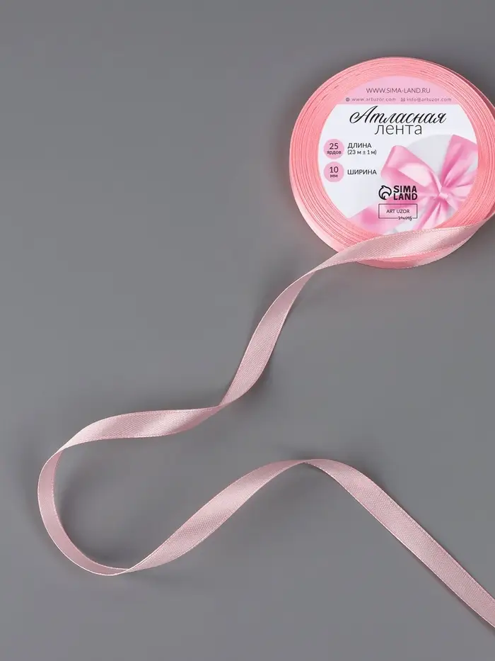 Атласная лента гладкая и приятная на ощупь. Используйте её для отделки изделий, украшения подарков, свадебного оформления, а также в техниках скрапбукинг и канзаши.