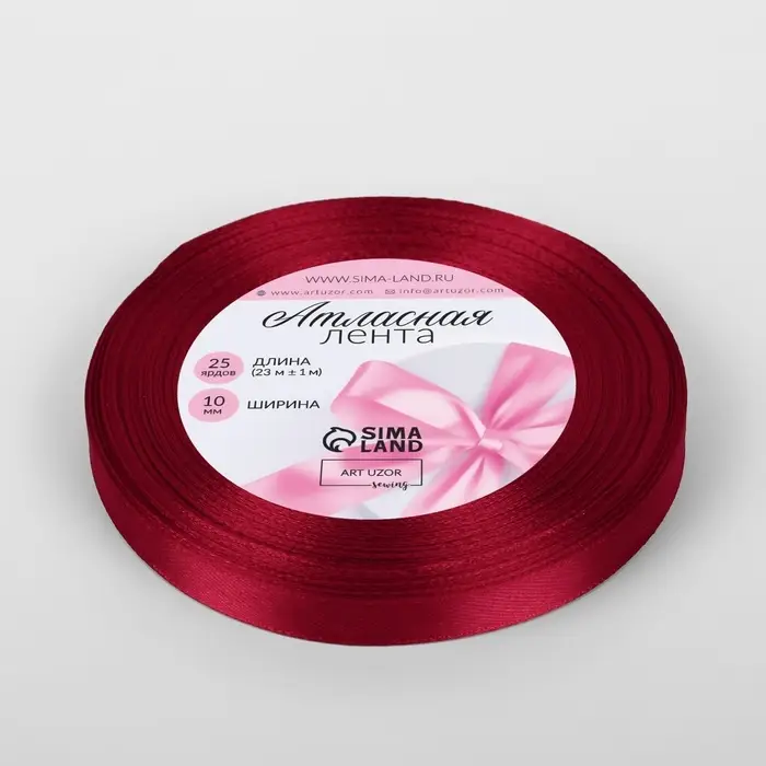 Лента атласная, 10 мм × 23 ± 1 м, цвет глубокий красный №33