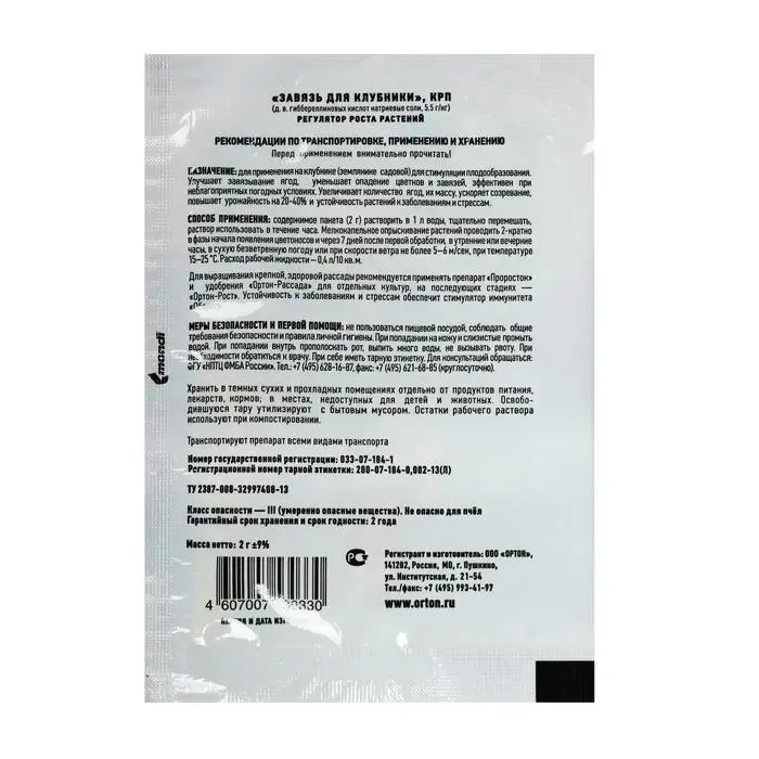 Стимулятор плодообразования "Завязь" Ягодная для клубники, 2 г