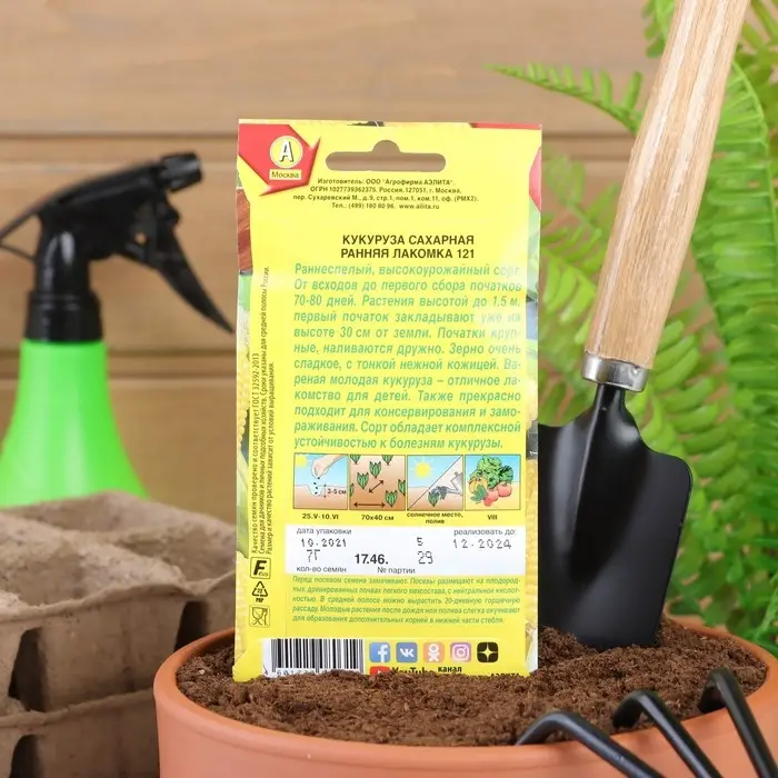 Семена сахарной кукурузы «Ранняя лакомка» — раннеспелый, высокоурожайный сорт сахарной кукурузы. Растение высотой 140–150 см.