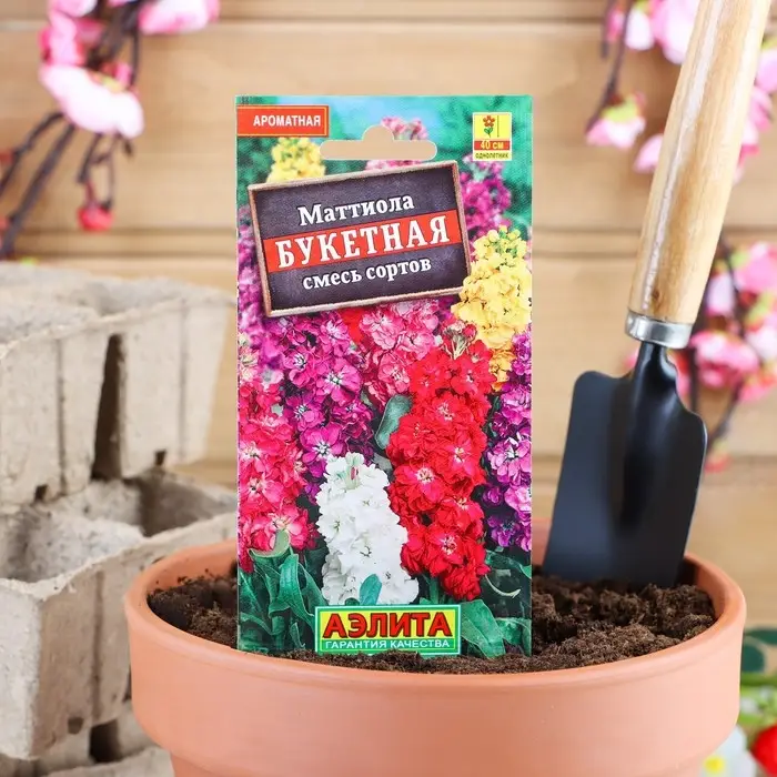 Маттиола (левкой) представляет собой растение с густомахровыми плотными соцветиями и насыщенным ярким ароматом. Соцветия используют для небольших букетов. Сорт пригоден для выращивания в контейнерах.