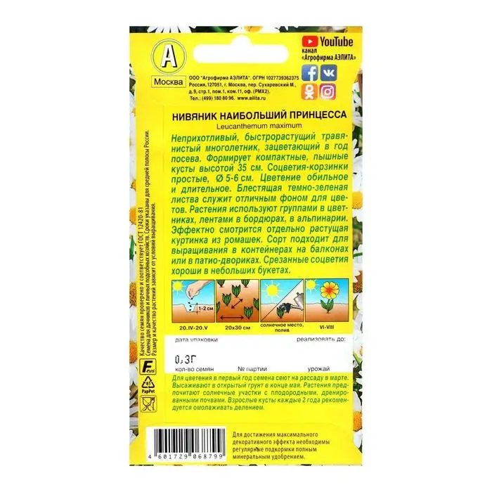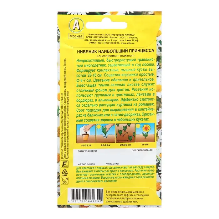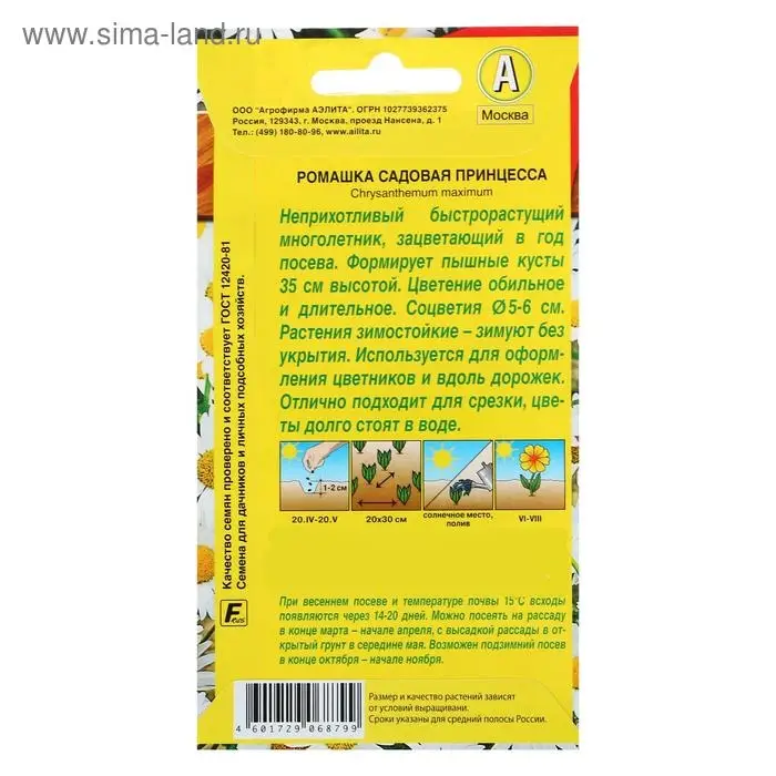 Семена цветов Ромашка садовая "Принцесса", 0,2 г