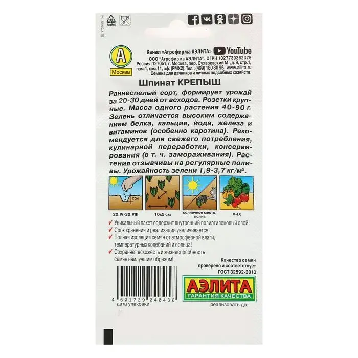 Семена Шпинат "Крепыш", 2 г