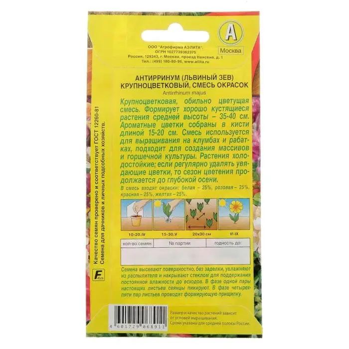 Семена цветов Львиный зев "Крупноцветковый", смесь окрасок, О, 0,3 г