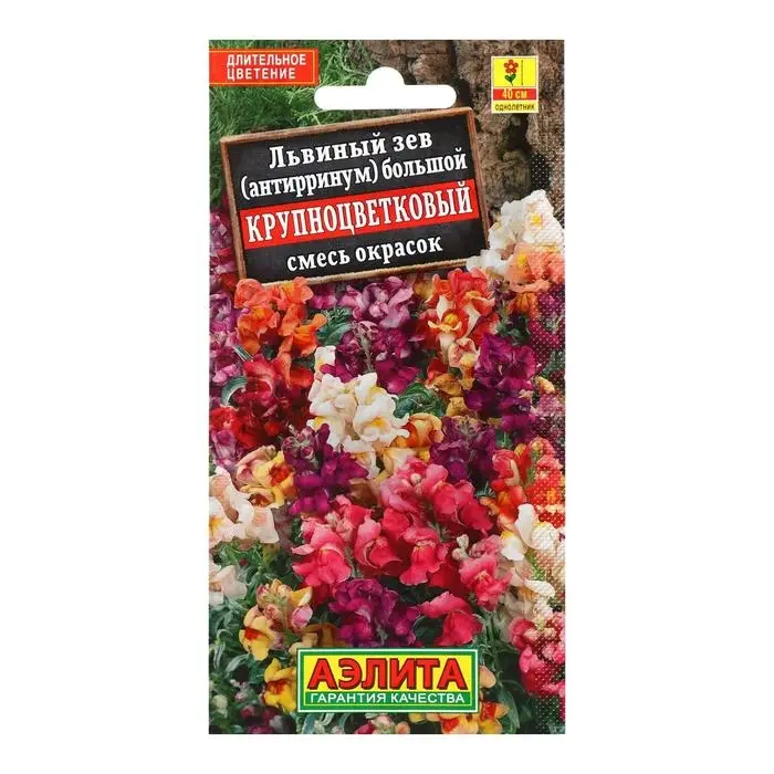 «Крупноцветковый» — смесь обильно цветущего львиного зева. Растения хорошо кустятся, имеют ароматные цветки. Используются для выращивания на клумбах и рабатках, в качестве горшечной культуры, подходят для создания массивов. Срезка сохраняет свежесть до 14 дней, при этом распускаются все бутоны.