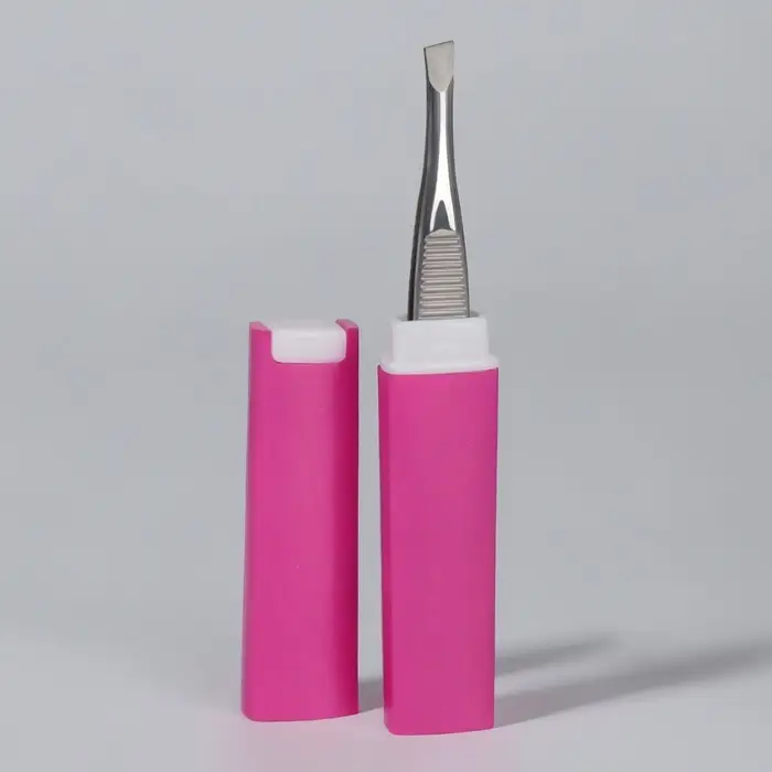 Пинцет скошенный, узкий, 9 см, в футляре, МИКС