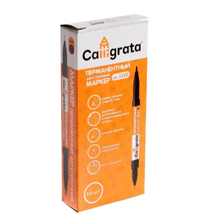 Маркер перманентный Calligrata, двухсторонний, круглый, 2 мм/0.7 мм, чёрный