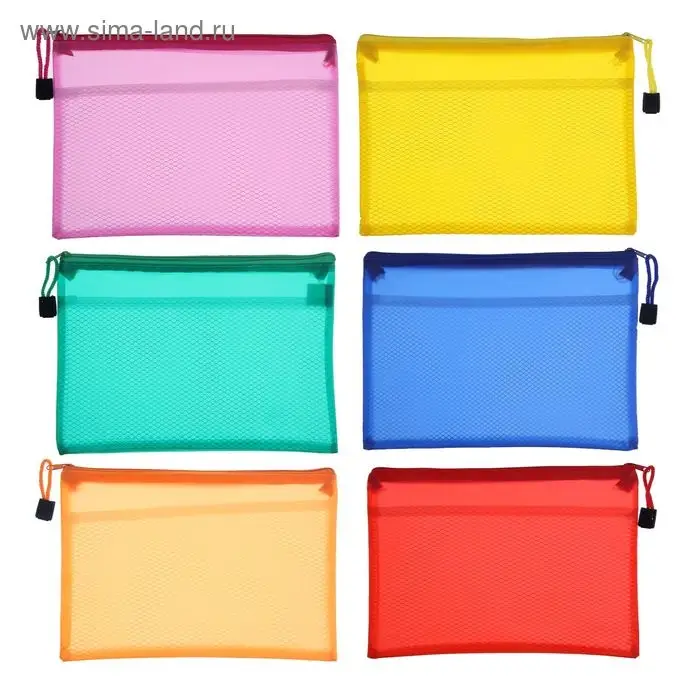 Папка-конверт на молнии Calligrata А6 (175 х 130 мм), с сеткой внутри, МИКС