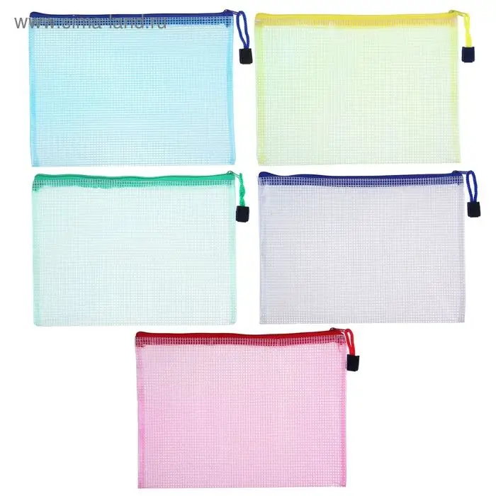 Папка-конверт на молнии, А65, с сеткой внутри, 24 × 11 cм, МИКС