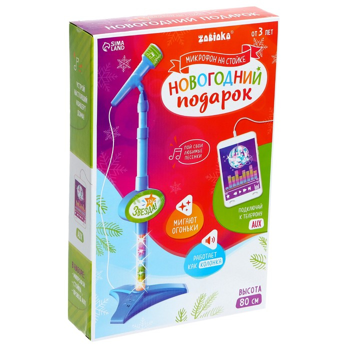 Микрофон на стойке «Новогодний подарок», цвет голубой