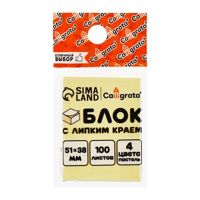 Блок с липким краем, 51×38 мм, 100 листов, 4 цвета, пастель