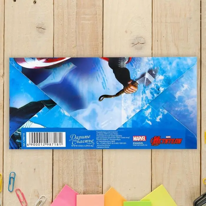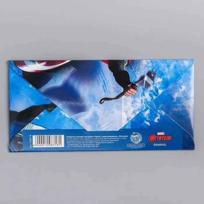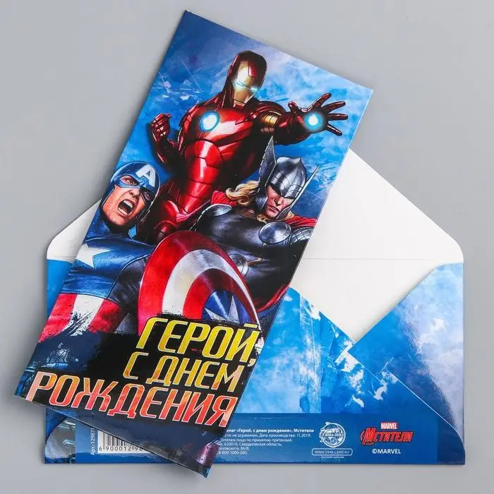 Конверт для денег, 16.5 х 8 см «С днём рождения, герой!», Мстители