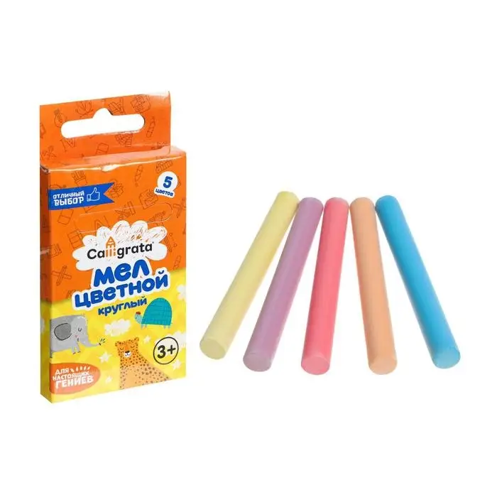 Мел школьный цветной, набор 5 цветов, круглый, в картонной коробке