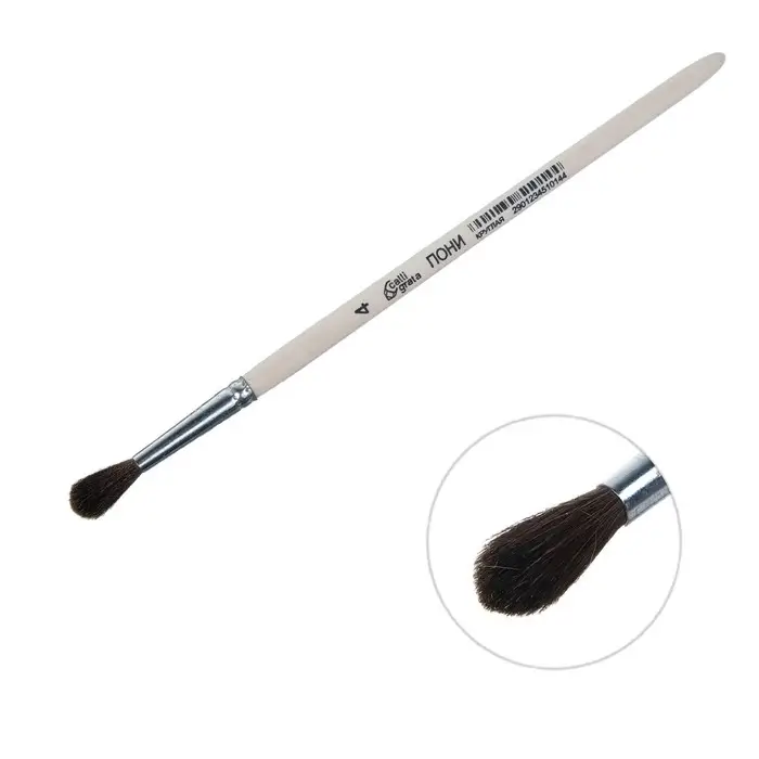 Кисть для рисования, Пони круглая № 4 (диаметр обоймы 4 мм; длина волоса 18 мм), деревянная ручка, Calligrata