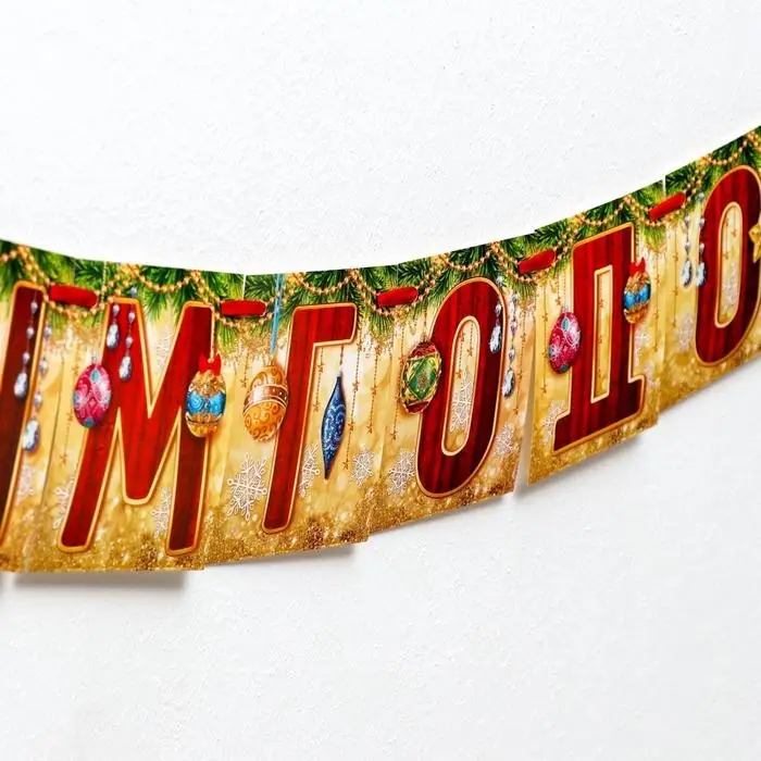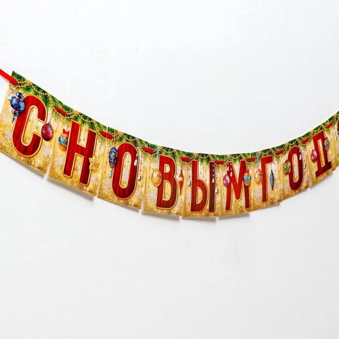 Растяжка - гирлянда "С Новым годом" - красивый и стильный атрибут праздничного оформления. Бумажная гирлянда, выполненная из плотного картона (200 грамм), будет отлично смотреться на кадрах в фотозоне и других локациях. Картонная гирлянда выполнена в современном стиле и подходит под различную тематику оформления праздника. Вывеска регулируется по длине и по желанию может использоваться в один или два ряда. Размер флажка — 12 × 12 см. Проденьте сквозь них ленточку и праздничное украшение готово!
