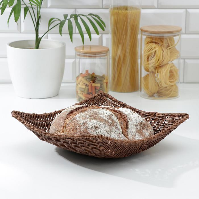 Корзинка для подачи Доляна «Плетёнка», 25×18×6,5 см, цвет коричневый