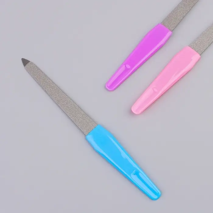 Пилка металлическая для ногтей, прорезиненная ручка, 15 см, МИКС