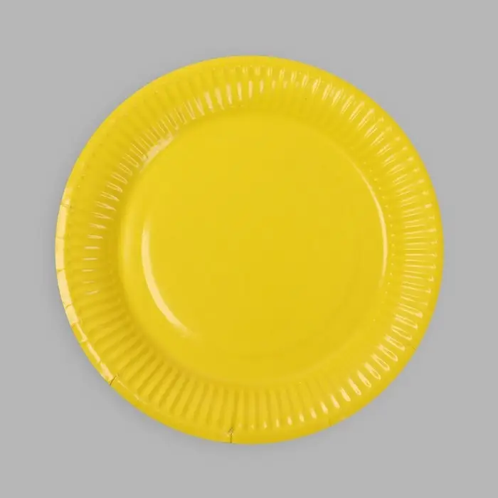 Тарелка одноразовая бумажная однотонная, желтая, 18 см