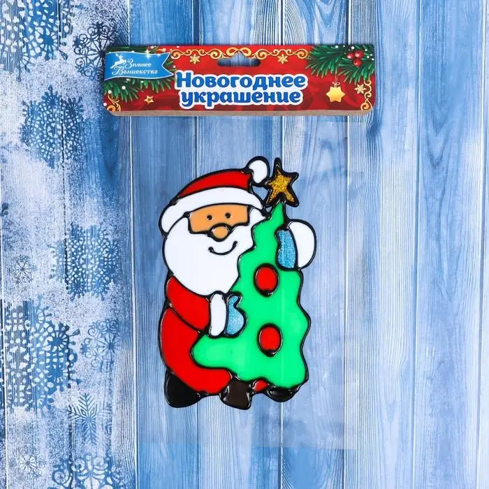 Наклейка на стекло «Дед Мороз с ёлкой», 9×14 см