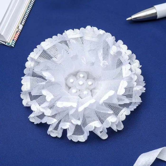 Резинка для волос бант «Школьница», цветок жемчужный, d=8 см, белая