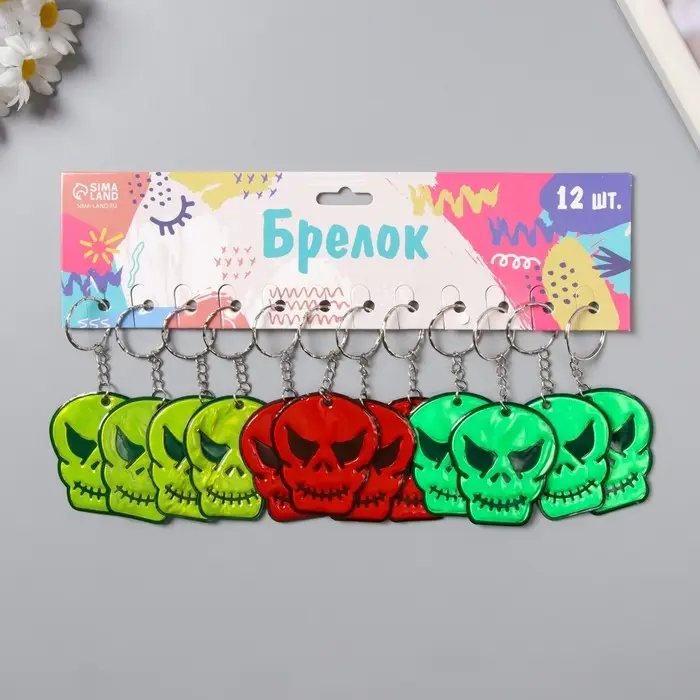 Брелок пластик светоотражающий "Череп" МИКС 5,5х5 см