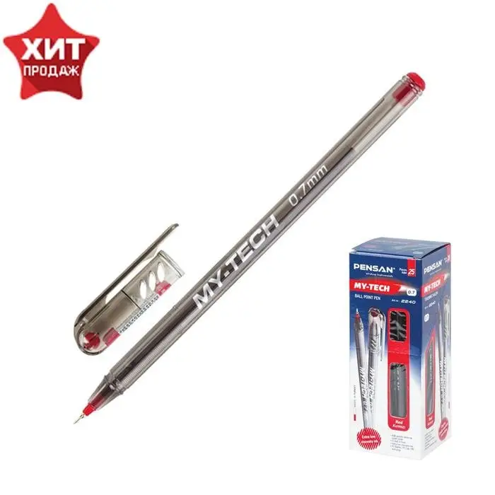 Ручка шариковая масляная Pensan My-Tech, узел-игла 0.7 мм, чернила красные