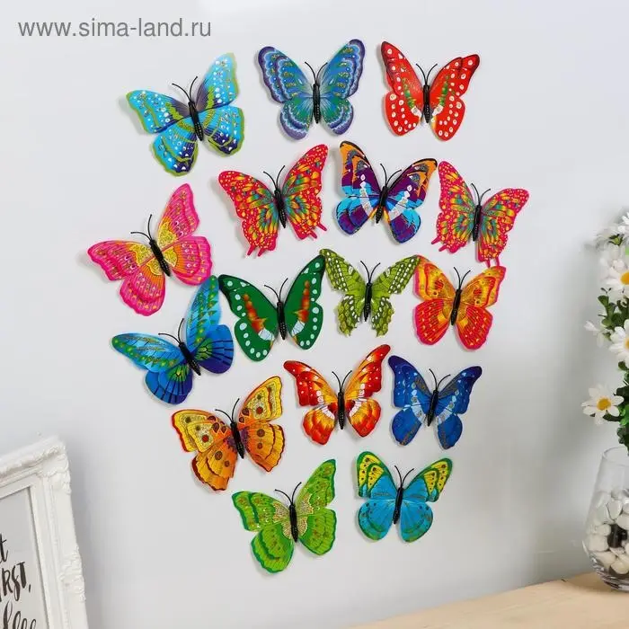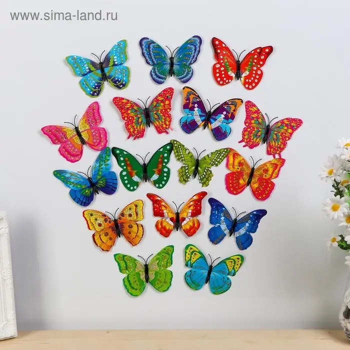 Магнит пластик "Бабочки. Флаг" набор 12 шт МИКС 10 см