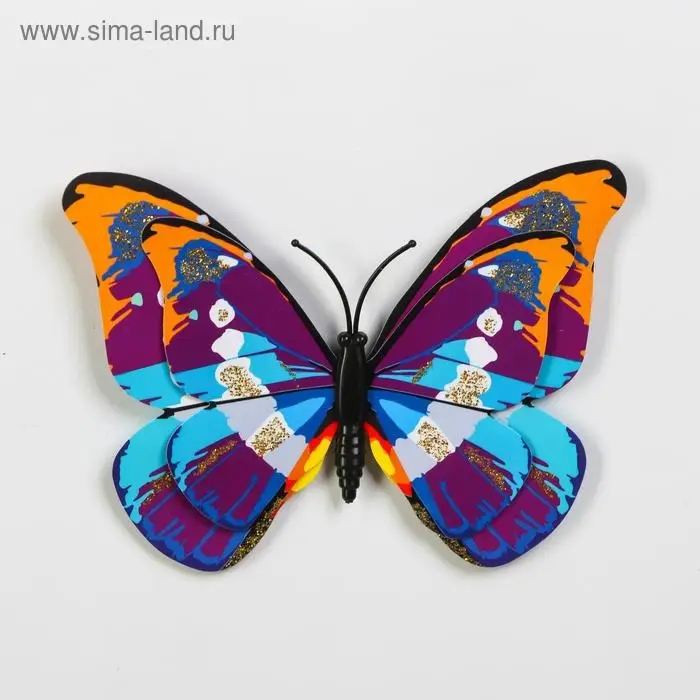 Магнит пластик "Бабочка с золотым глиттером" двойные крылышки,МИКС 10х7 см