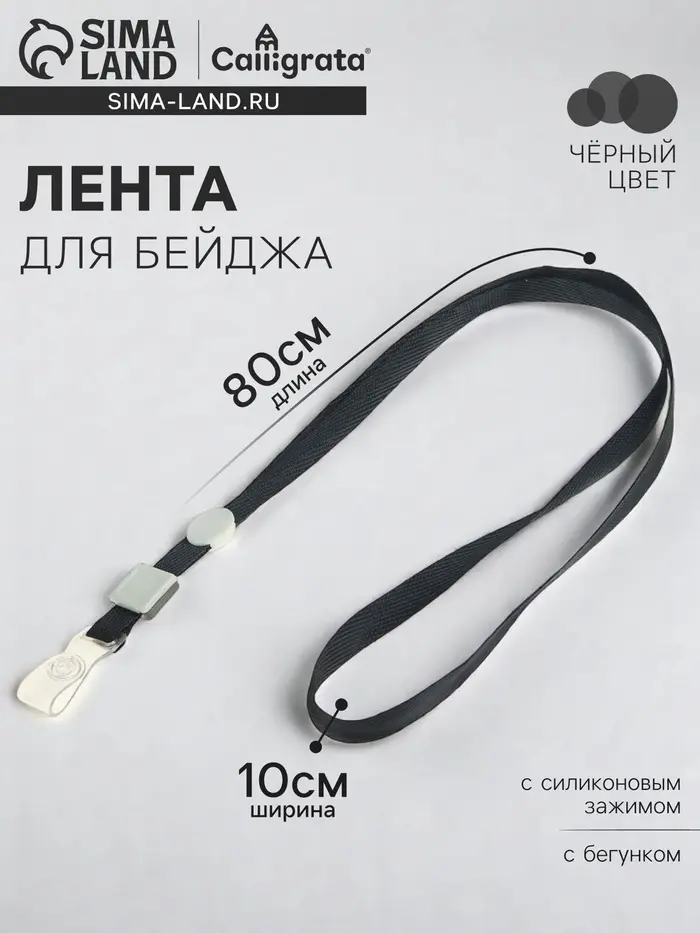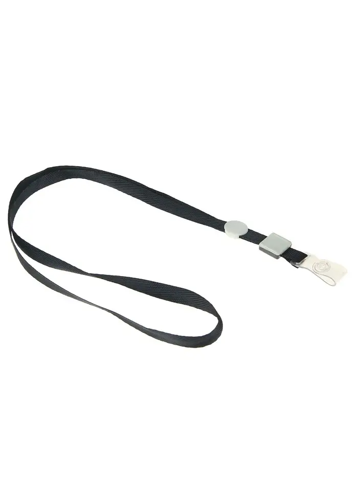 Лента для бейджа, 10 мм х 80 см, плотная, с бегунком и с силиконовым зажимом, чёрная