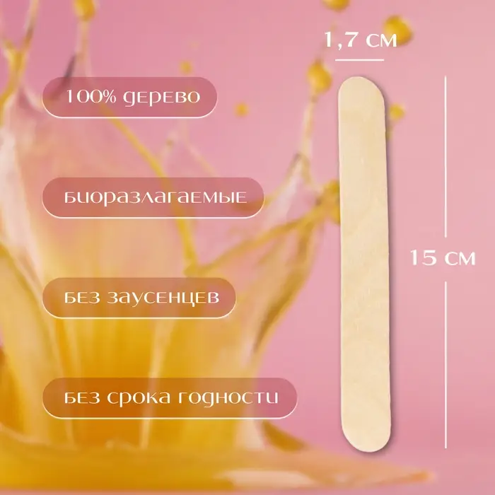Эти шпатели изготовлены из качественного дерева, что гарантирует их прочность и надежность. Их натуральный цвет и размер в 15 x 1,7 см обеспечивают удобство в работе, позволяя легко и аккуратно наносить восковые смеси.
