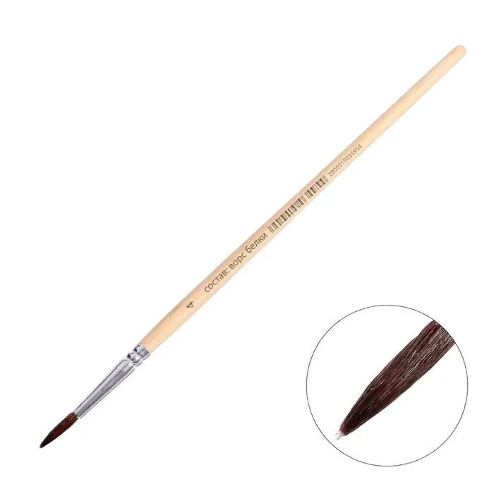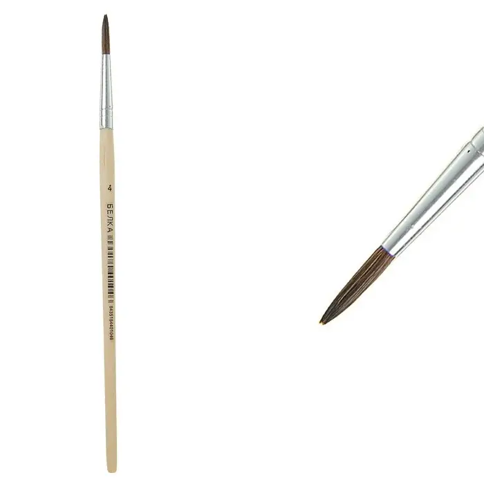Кисть для рисования, Синтетика Круглая № 4 (диаметр обоймы 4 мм; длина волоса 18 мм), деревянная ручка, Calligrata