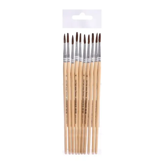 Набор кистей белка круглые 5 штук (№1,2,3,4,5) с деревянными ручками на блистере