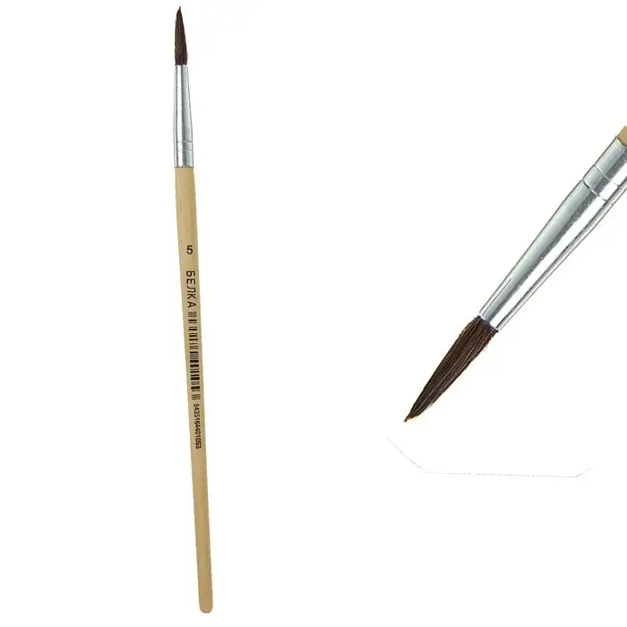 Набор кистей белка круглые 5 штук (№1,2,3,4,5) с деревянными ручками на блистере