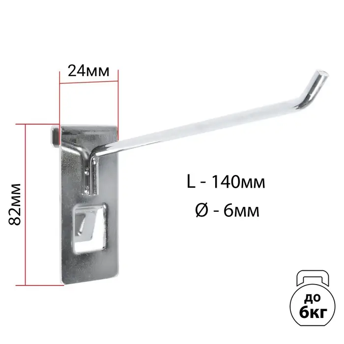 Крючок на сетку одинарный, d=6 мм, L=14 см, цвет хром