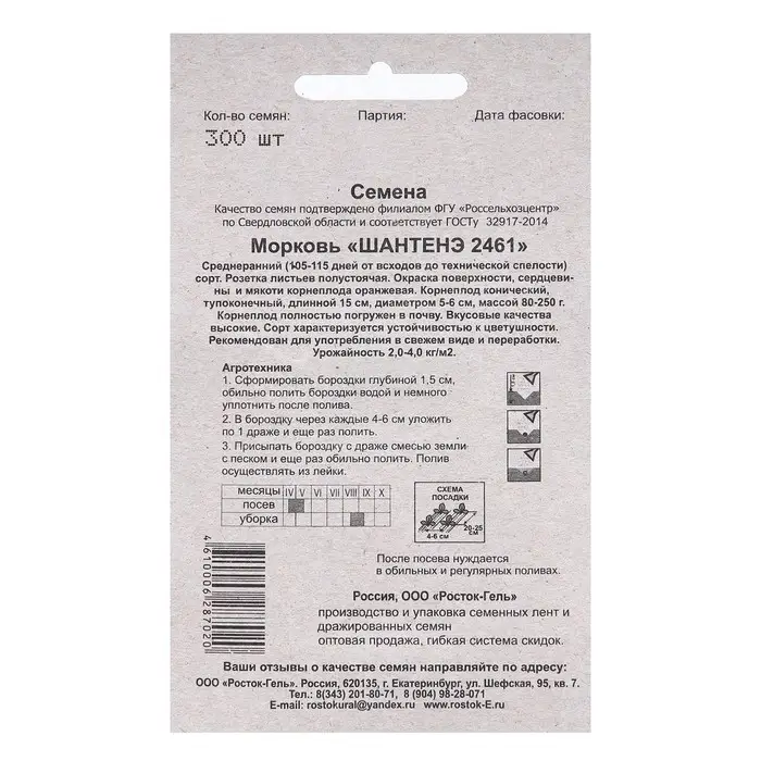 Семена Морковь "ШАНТЕНЭ 2461" простое драже, 300 шт