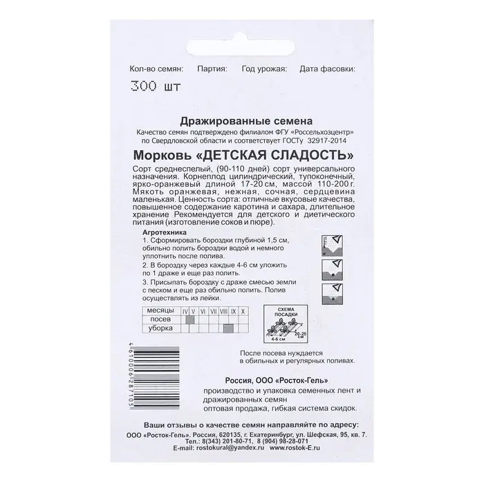 Семена Морковь "ДЕТСКАЯ СЛАДОСТЬ" простое драже, 300 шт