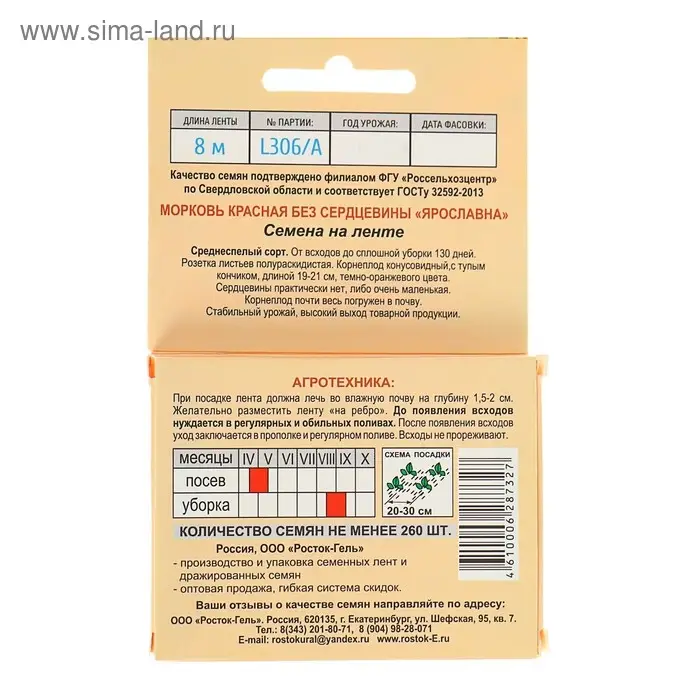 Семена Морковь КРАСНАЯ БЕЗ СЕРДЦЕВИНЫ "ЯРОСЛАВНА" гелевое драже, 300 шт