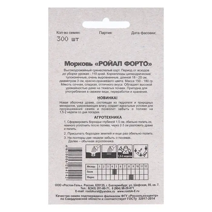 Семена Морковь "РОЙАЛ ФОРТО" гелевое драже, 300 шт
