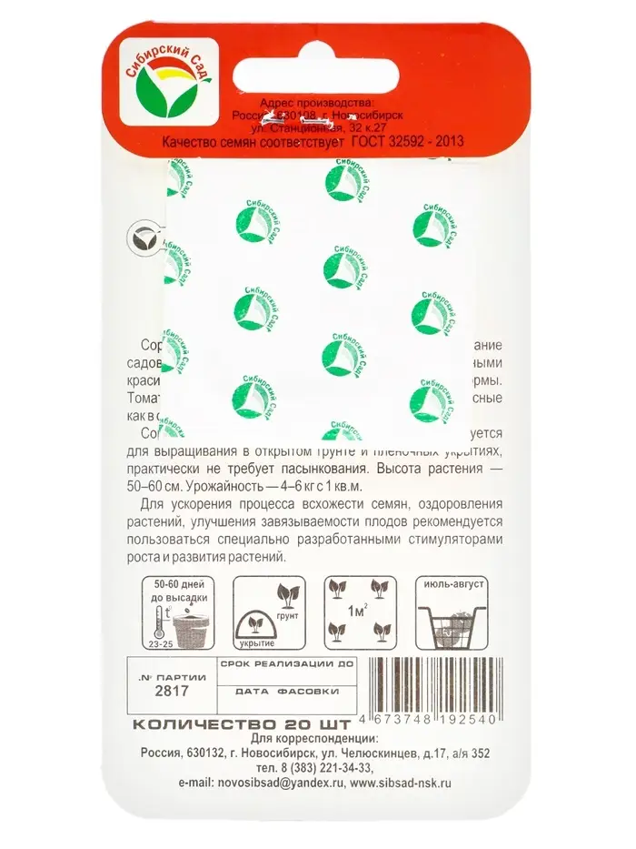 Семена Томат "Петруша-огородник",детерминантный,низкорослый 20 шт